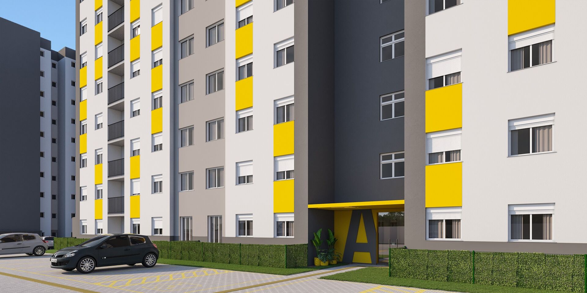 Área privativa dos apartamentos: 47,08m² no apartamento com pátio. 49,69m² no apartamento com pátio e varanda. 47,08m² no apartamento sem sacada. 49,69m² no apartamento com sacada.