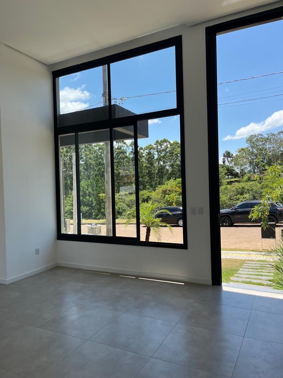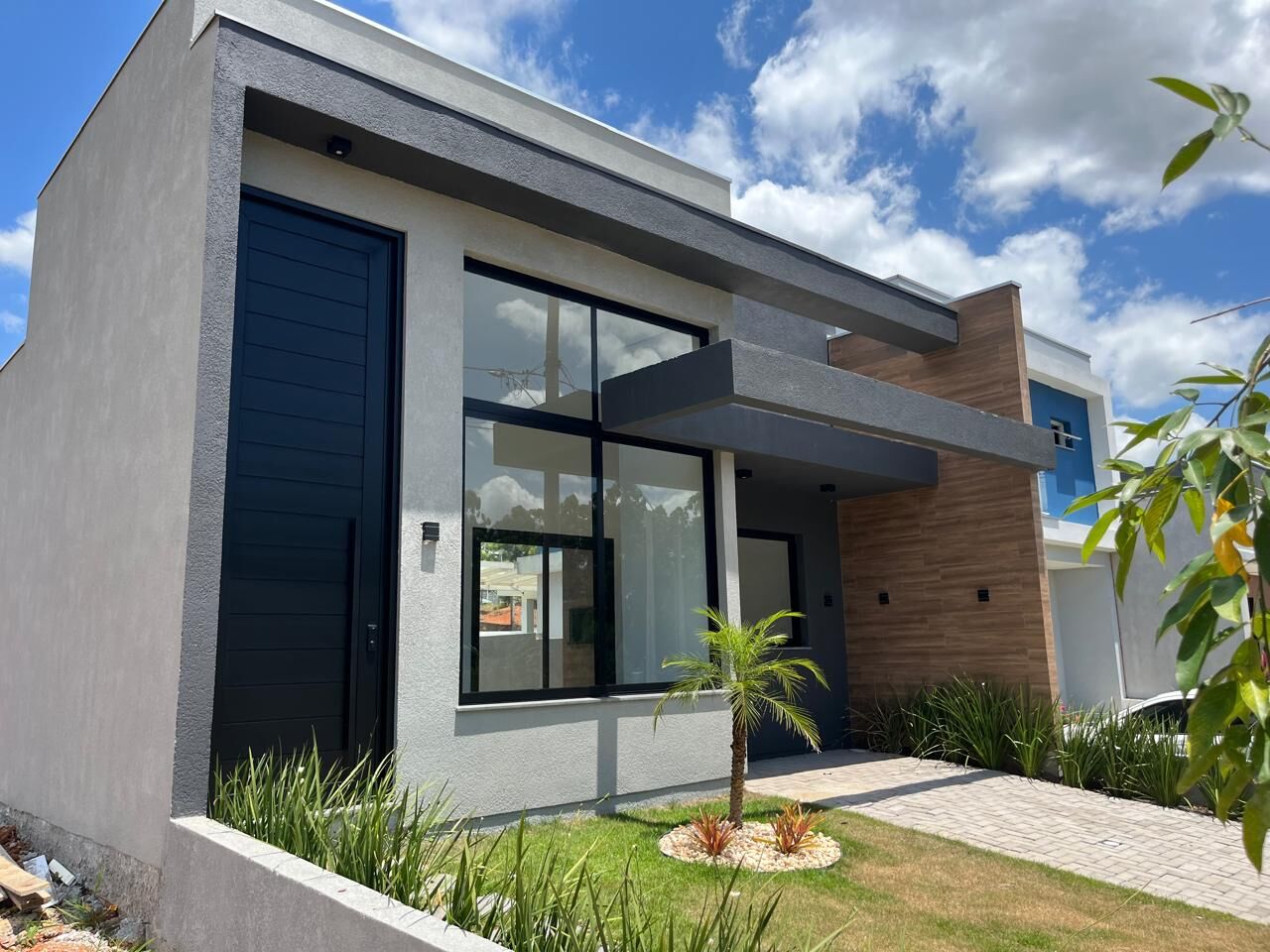 ✔️ Fachada imponente com volumes em concreto e esquadrias de alumínio preto