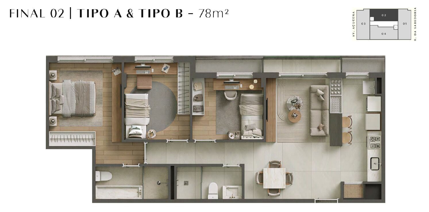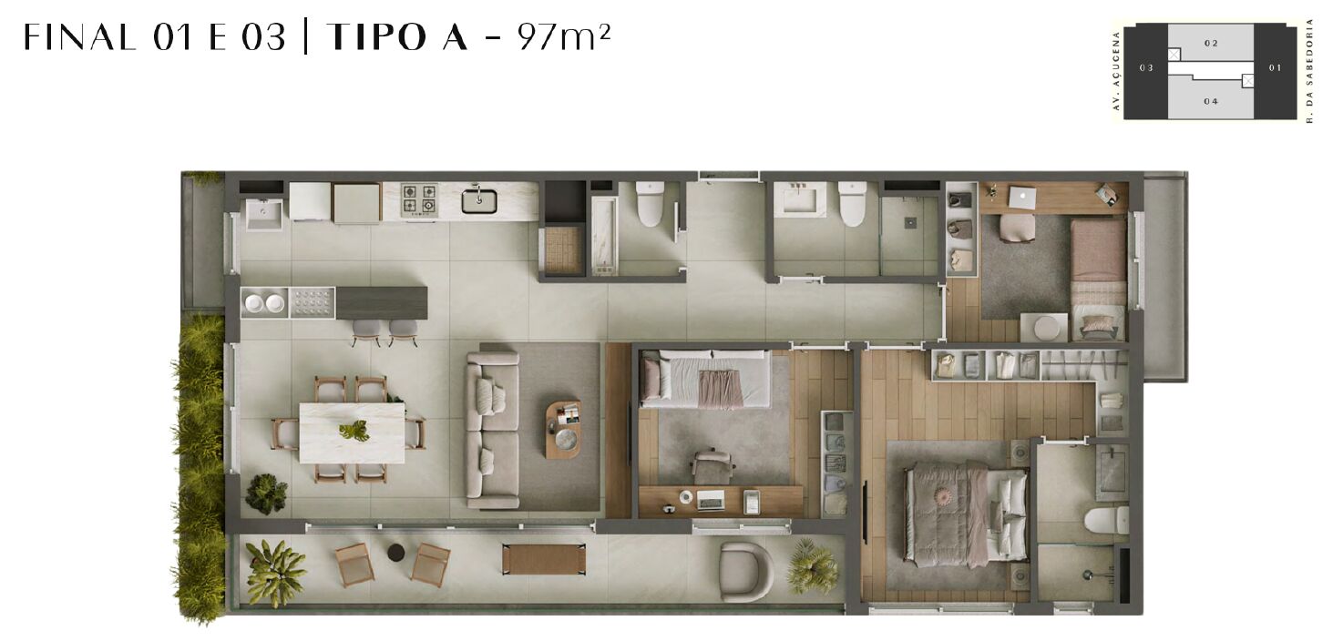 Assinado pelo consagrado Studio Ronaldo Rezende, referência máxima da arquitetura brasileira contemporânea, o Mondrian carrega a essência do artista que revolucionou a arte e influenciou o design mundial. Cada traço do projeto traduz um estilo de vida arrojado e elegante.